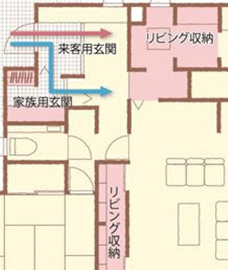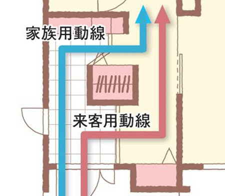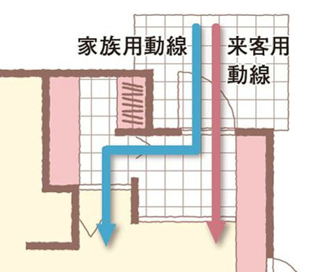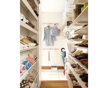 玄關(guān)的流線設(shè)計(jì):家人和客人的流線分開,并設(shè)置不同的鞋柜收納空間