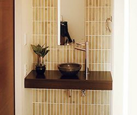 特別是對(duì)于養(yǎng)著寵物的主人來說,回家進(jìn)門能洗手也是非當(dāng)貼心的設(shè)計(jì)。在玄關(guān)設(shè)置一個(gè)有設(shè)計(jì)感的洗手池如下: