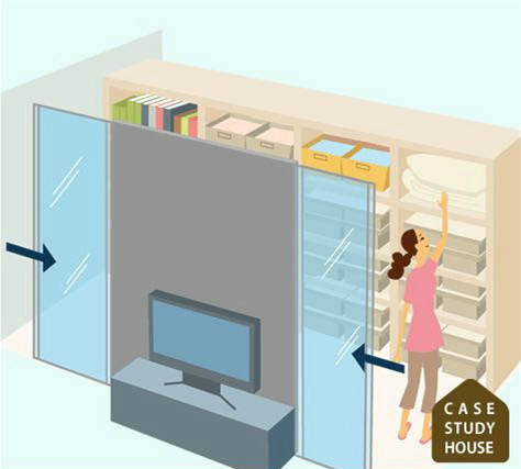 客廳說亂七八糟都可以很快的收納到里面,非常便利。突然來客人的時(shí)候也能很快的收拾屋子。