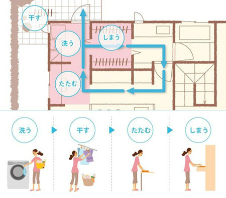 設(shè)計(jì)的時(shí)候就充分考慮從洗衣到晾曬空間到折疊到收納的流線,例如圖中的布局,洗衣房連著陽臺(tái),洗完可以直接拿出去曬,收回來疊好直接放進(jìn)服裝的儲(chǔ)藏室。