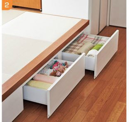 這點(diǎn)已經(jīng)非常普及了。如果家里有日式榻榻米的話不妨嘗試,收納能力非常強(qiáng)。需要注意的是如果設(shè)置抽屜的話,對(duì)于榻榻米的結(jié)構(gòu)需要加強(qiáng),否則荷載導(dǎo)致變形的話抽屜會(huì)有打不開的風(fēng)險(xiǎn)。