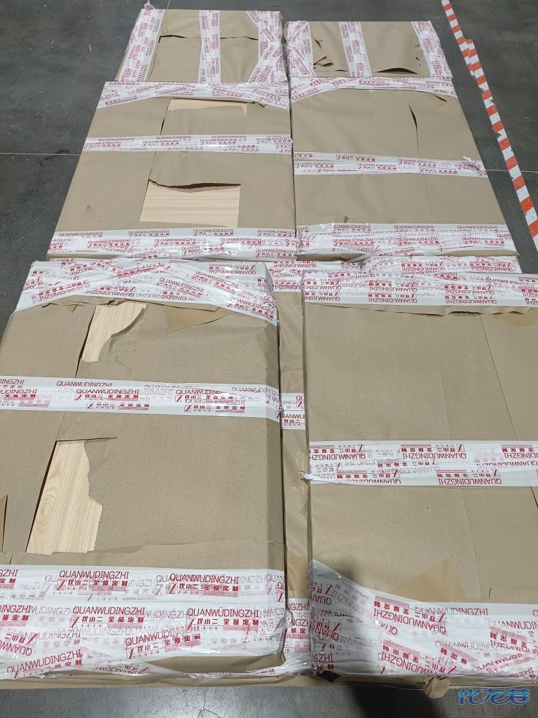 進入打包環節,我家柜子每塊板都是整個打包起來的,以防運輸過程中劃傷或者磕碰到,跟板材下面墊板一個原理哦!重新訂板會存在色差,這是重點,圈起來必考。全部打包好就可以聯系客戶送貨咯!